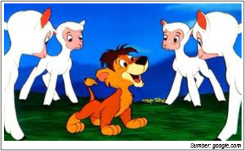 Alkisah, di sebuah hutan belantara ada seekor induk singa yang mati setelah melahirkan anaknya. Bayi singa yang lemah itu hidup tanpa perlindungan induknya. Beberapa waktu kemudian serombongan kambing datang melintasi tempat itu. Bayi singa itu menggerak-gerakkan tubuhnya yang lemah. Seekor induk kambing tergerak hatinya dan merasa iba melihat anak singa yang lemah dan hidup sebatang kara. Sang induk kambing lalu menghampiri bayi singa itu dan membelai dengan penuh kehangatan dan kasih sayang. Merasakan hangatnya kasih sayang seperti itu, si bayi singa tidak mau berpisah dengan sang induk kambing. Jadilah ia bagian dari keluarga besar rombongan kambing. Hari berganti hari anak singa tumbuh dan besar dalam asuhan induk kambing dan hidup dalam komunitas kambing. Ia menyusu, makan, minum, dan bermain bersama anak-anak kambing lainnya.