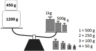mengganti anak timbangan X dengan anak timbangan 2 dan 4