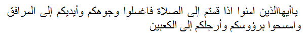 Hai orang-orang yang beriman, apabila kamu hendak mengerjakan shalat, Maka basuhlah mukamu dan tanganmu sampai dengan siku, dan sapulah kepalamu dan (basuh) kakimu sampai dengan kedua mata kaki....(Al-Maidah ayat 6)