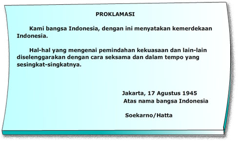 Proklamasi kemerdekaan bangsa Indonesia merupakan titik puncak perjuangan bangsa Indonesia yang telah lama dilakukan agar dapat terbebas dari belenggu penjajahan.